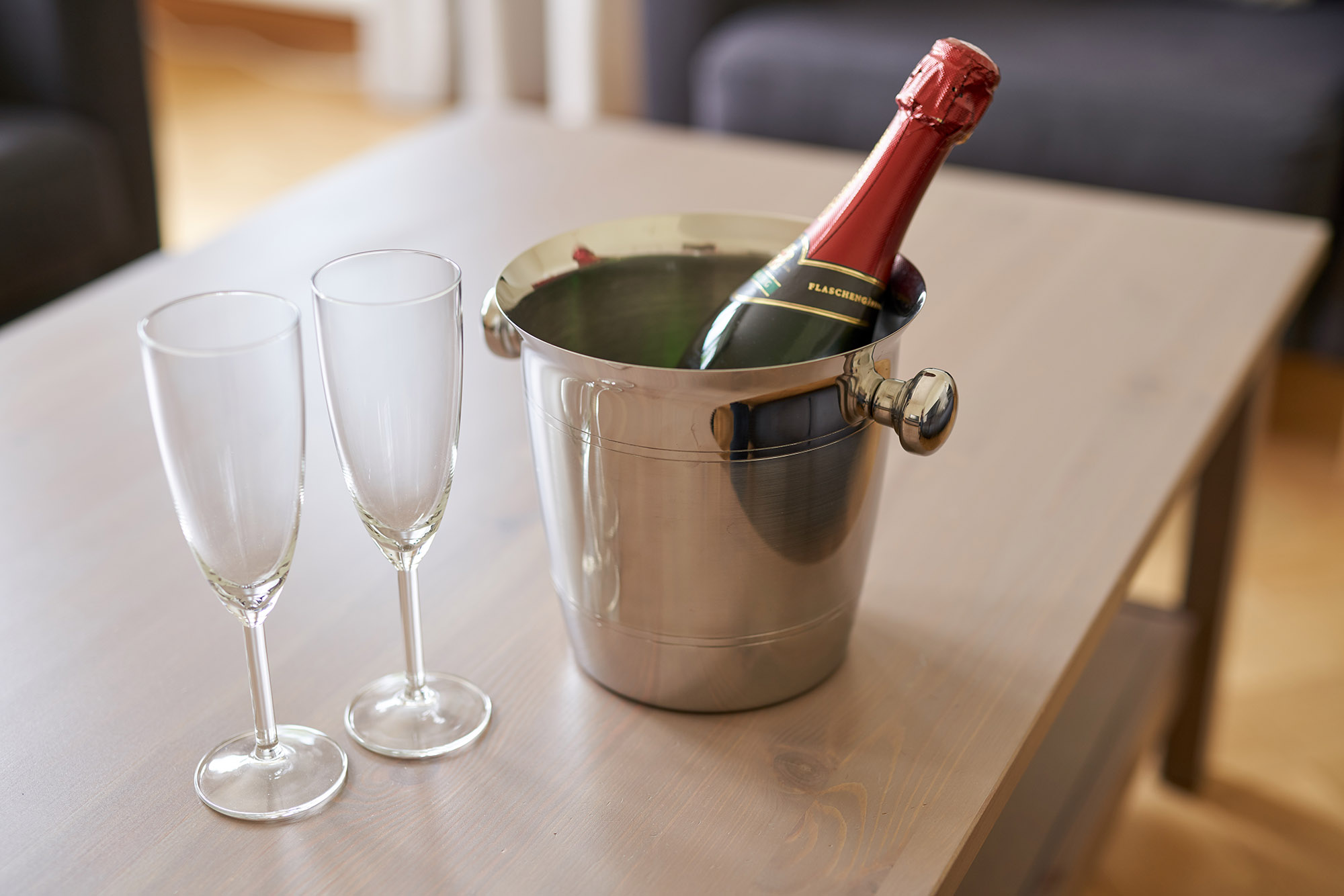 • Begrüßungsgeschenk 1 Flasche Sekt und 1 Flasche Wasser